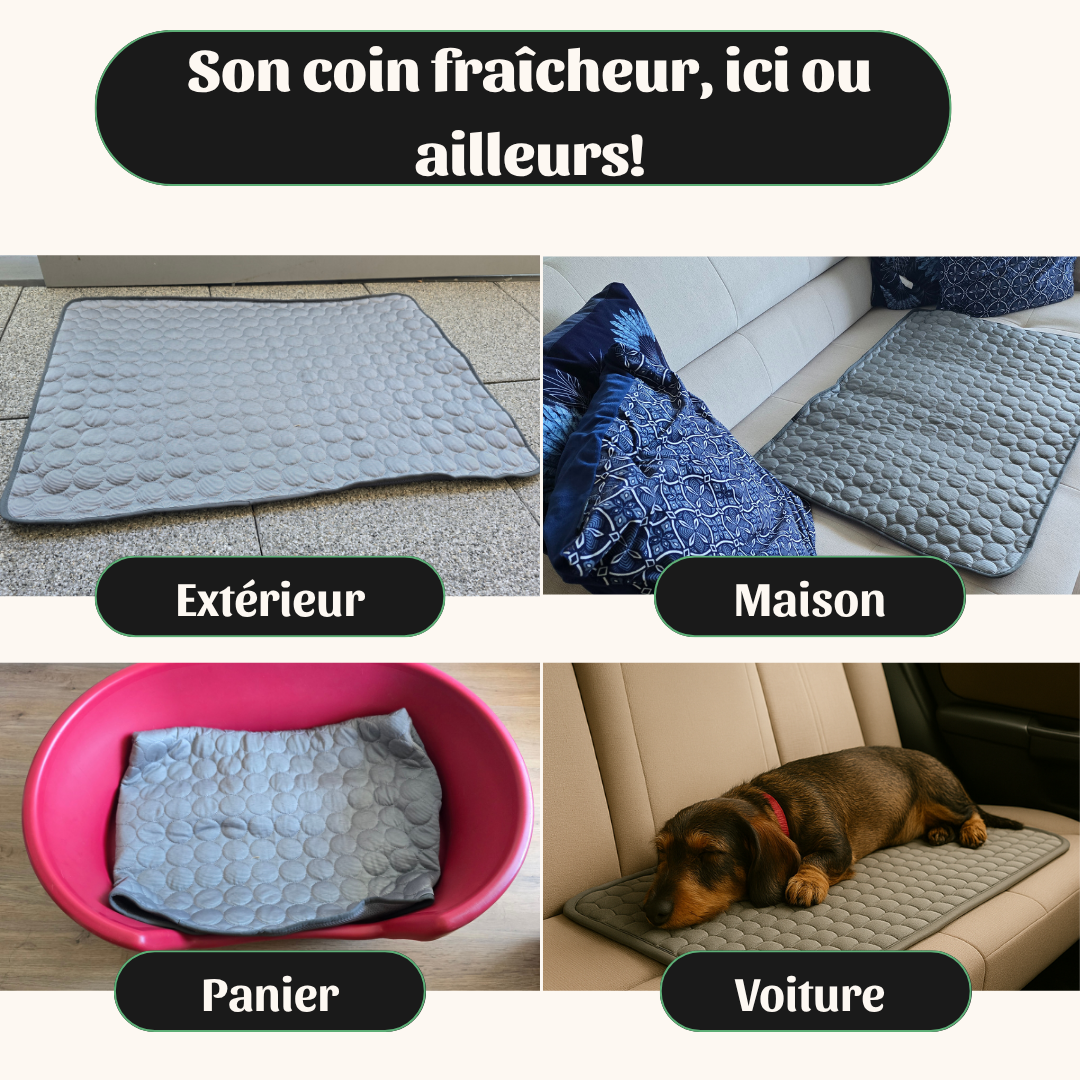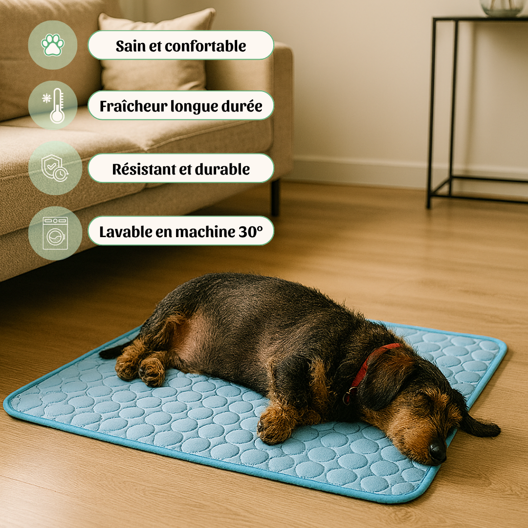 Le LouliPad utilise une technologie de tissu en soie glacée combinée à une mousse respirante qui dissipe naturellement la chaleur. Dès que votre animal s’allonge, il ressent une sensation immédiate de fraîcheur, sans aucun branchement ni manipulation.